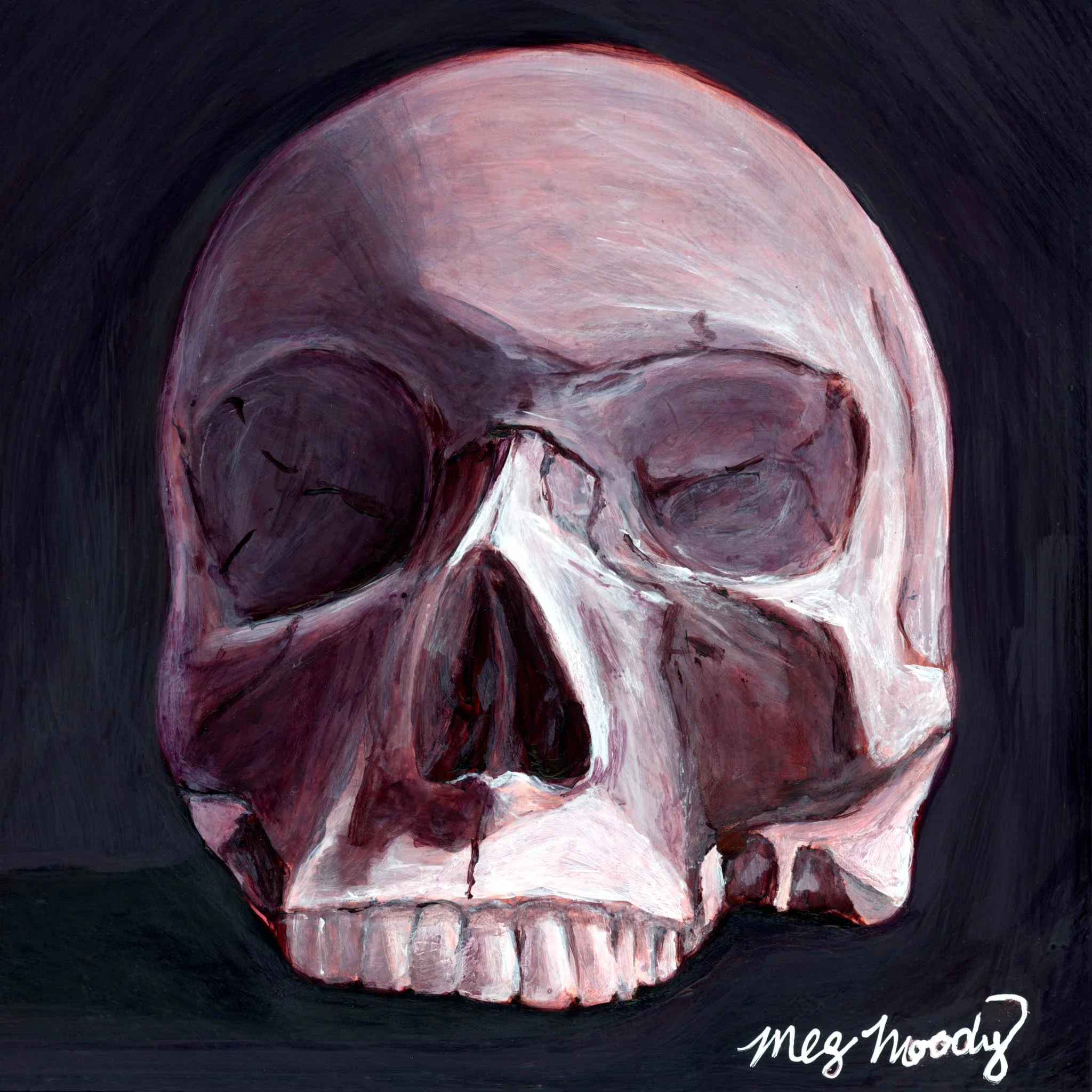 Image 1 of 1 Skull - Original Painting $250.00 5”x5”Acrylic on gesso boardUnframed original painting Add To Cart Added! 5”x5”Acrylic on gesso boardUnframed original painting
